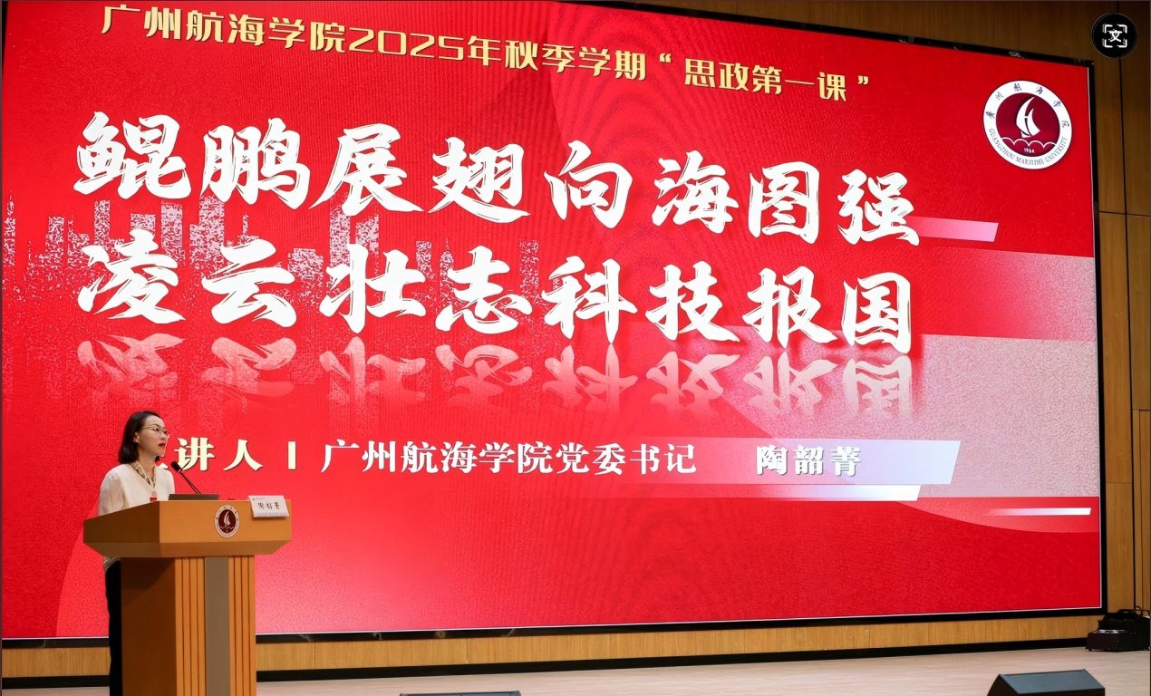 为勉励新“广航人”读懂广航院、融入广航院,坚定勇做海洋强国、交通强国建设者的使命担当,9月2日上午,学校党委书记陶韶菁以《鲲鹏展翅向海图强 凌云壮志科技报国》为题在黄埔校区郑和堂为2025级新生讲授“思政第一课”。在黄埔校区、琶洲校区的26个会场,4000余名新生同上一堂课,共同回顾新时代以来中国海洋与交通科技发展史以及广航院与国家时代同向同行的红色历史,赓续红色血脉、弘扬红色品格,擦亮精神底色、汲取奋进力量。活动由学校党委委员、副校长陈建平主持。
